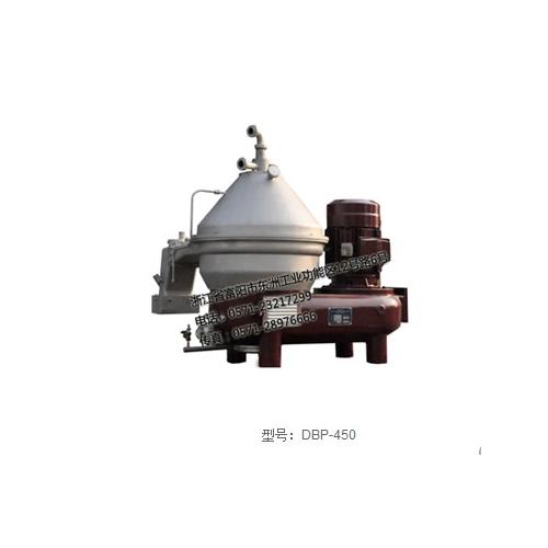 DBP 450型液-固分离机系新一代高效分离设备,带预注腔的可控排量型转鼓,是能实现全排及大/小部排的活塞排渣型碟式分离机,主要用于去除悬浮液中的固体杂质,实现乳浊液分离,以得到纯净悬浮液体,属于非均相的二相或三相分离。